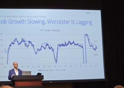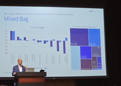 The Worcester Economic Club was pleased to welcome Jeff Myers, Research Director at Collier. A 20-year industry veteran, Jeff brought an extensive commercial real estate background that includes expertise in city planning, market research, landlord representation and more.